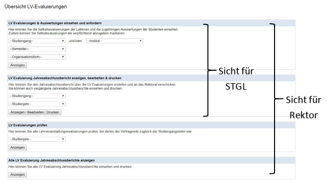 LV Evaluierungen und Auswertungen einsehen und anfordern