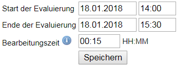 Sobald die Evaluierung durchgeführt wurde, wird die Anzahl der tatsächlich ausgegebenen Codes eingetragen. Danach kann die Auswertung angezeigt werden. Es wird eine detailierte Auswertung mit Durchschnittsbewertung der einzelnen Fragen und eine Übersicht der Textantworten angezeigt.
