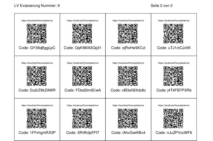 Nachdem die Evaluierungskriterien festgelegt wurden, kann die Codeliste mit den Zugangscodes generiert und an die Studierenden verteilt werden. Sobald diese den Code anwenden, steht ihnen eine begrenzte Zeit zur Verfügung, um die Umfrage auszufüllen.