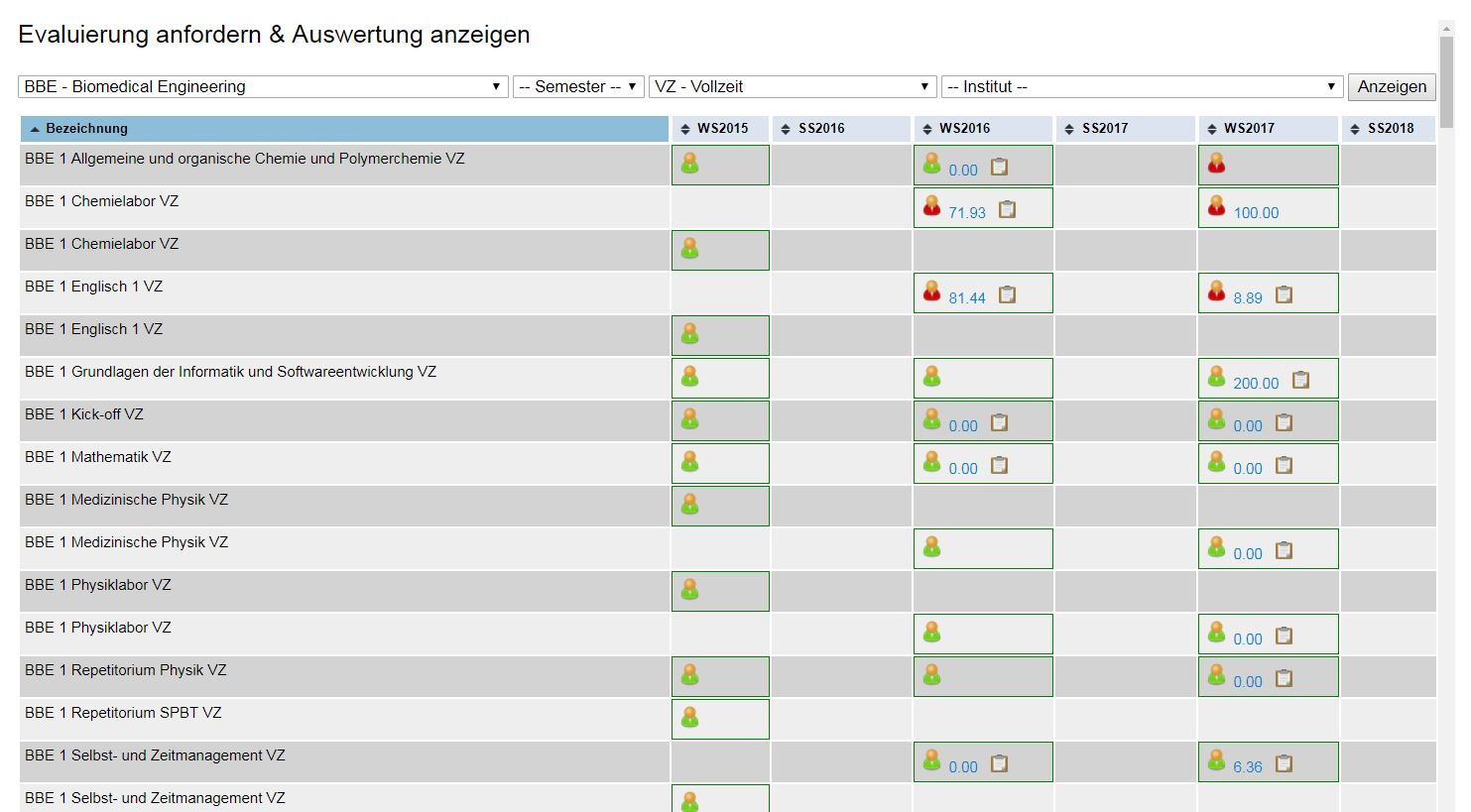 StudiengangsleiterInnen erhalten hier je nach Auswahl eine Übersicht aller entsprechenden Lehrveranstaltungen. Zu jeder dieser LVs können: