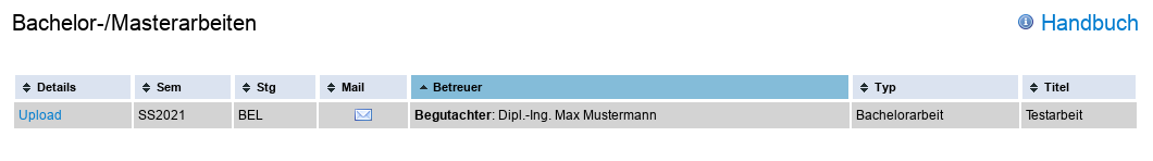 Abbildung 9.1.: Übersichtsliste der betreuten Bachelor- und Masterarbeiten