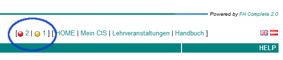 Das Ampelsystem ist ein Erinnerungs- und Bestätigungssystem, welches beliebig für Studierende, LektorInnen und MitarbeiterInnen eingesetzt werden kann. Hierbei werden dem Benutzer/der Benutzerin nach dem Login entsprechend offene Meldungen als rote bzw. gelbe Ampeln in der Titelleiste angezeigt (siehe Abbildung 3.1). Neue Meldungen können nur von Administratoren angelegt und gewartet werden.