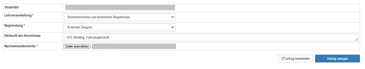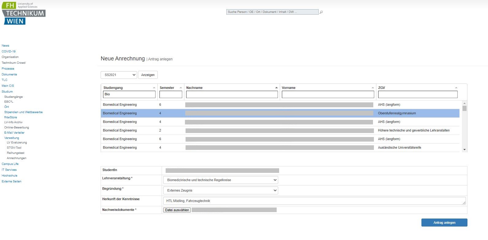 Die Studiengangsleitung kann bei Bedarf auch selbst Anrechnungsanträge anlegen.