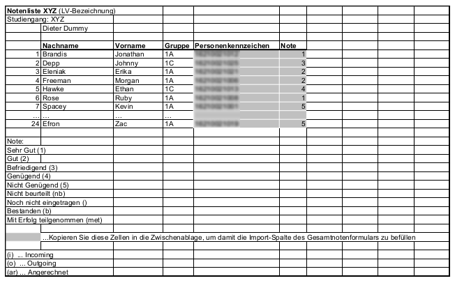 Es besteht die Möglichkeit, Noten aus einem Excel-File zu importieren - hierzu sind folgende Schritte erforderlich: