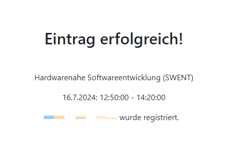 Angekündigte Entschuldigungen ohne Nachweis können nach eigenem Ermessen von der Studiengangsassistenz gelöscht werden.