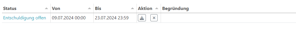 • Status: Entschuldigungen können vor der Entscheidung der Verwaltung gelöscht werden, danach nicht mehr.
