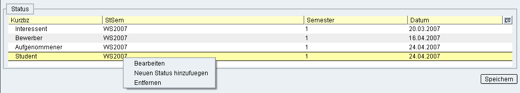 Die Option „Aktiv“ (Registerkarte Details) ist speziell bei Incoming-Studierenden zu kontrollieren und im Falle eines Studienabbruchs zu entfernen, da diese sonst im Folgesemester erneut aufscheinen, was zu Fehlermeldungen im Rahmen der BIS-Meldung führt!