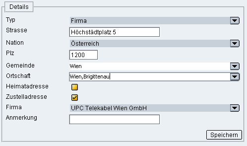Adresse = Unternehmensanschrift, an die der Lehrauftrag gesendet wird