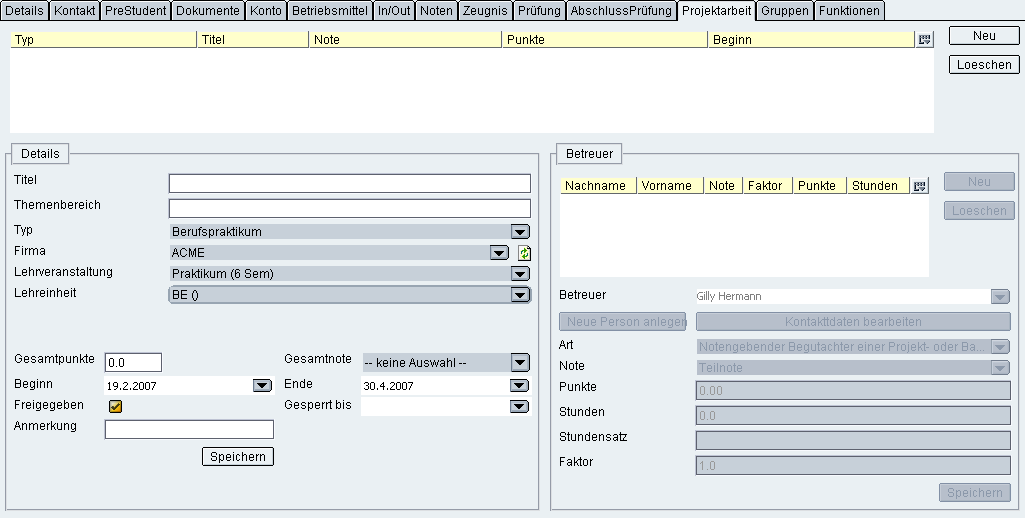 Abbildung 16.6.: Anlegen eines Praktikums 1