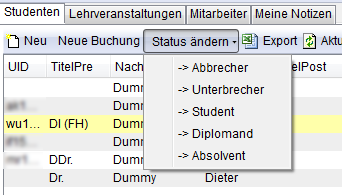 Nachfolgend beschriebene Korrekturmöglichkeiten sollten nur in Ausnahmefällen verwendet werden. Standardmäßig sind Studierenden-Stati immer unter Status ändern zu bearbeiten.