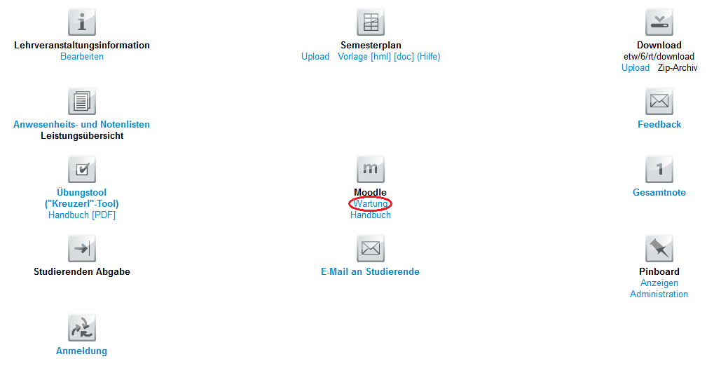 Es ist nicht möglich das Kreuzerltool und Moodle für ein und dieselbe Lehrveranstaltung zu verwenden. Sobald das Kreuzerltool in Verwendung ist wird Moodle für die gesamte Lehrveranstaltung gesperrt, und umgekehrt. Sollte es zu einer Lehrveranstaltung mehrere Lehreinheiten (zB. Übungsgruppen) geben, in denen verschiedene Lektoren unterrichten, müssen sich alle Lektoren auf ein System einigen, das für diese LVA verwendet werden soll.