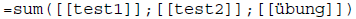 Bildet die Summe aus den drei Bewertungsaspekten „test1“, „test2“ und „übung“