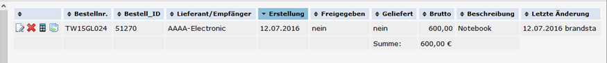 Öffnet das Bestellformular der Bestellung damit Änderungen vorgenommen werden können.